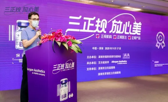 2020年9月17日,由深圳市整形美容行業(yè)協(xié)會主辦,美國艾爾建公司承辦,深圳市衛(wèi)生監(jiān)督局、羅湖區(qū)衛(wèi)健局為支持單位的“三正規(guī)?放心美”行業(yè)自律行動在深圳市羅湖區(qū)成功召開。本次活動積極響應了國家衛(wèi)健委等八部門聯(lián)合發(fā)布的《關于進一步加強醫(yī)療美容綜合監(jiān)管執(zhí)法工作的通知》,推進醫(yī)美行業(yè)自律與規(guī)范化生態(tài)建設,旨在向美容就醫(yī)者傳遞“正規(guī)醫(yī)美機構、正規(guī)醫(yī)生、正規(guī)產品”的合法理念,幫助提升安全風險意識,建立理性、科學的求美觀。深圳市衛(wèi)生監(jiān)督局局長蔡本輝致辭